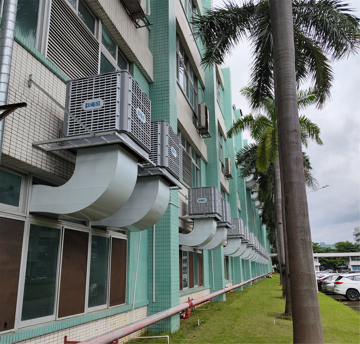 东莞某塑胶制品有限公司,于2022年在深圳展会找到我司,一注塑车间长月70米宽30米高6.8米,由于是注塑车间,注塑机发热量大,空气不流通,造成夏季车间温度高达40多度。一面安装冷风机往室内输送冷风,另外一面安装负压风机往室外排热风,从而形成空气对流解决车间降温及闷热问题。得到了车间员工的满意,也得到了该司领导的认可。最后另外一个车间也让我们帮忙解决车间闷热问题。