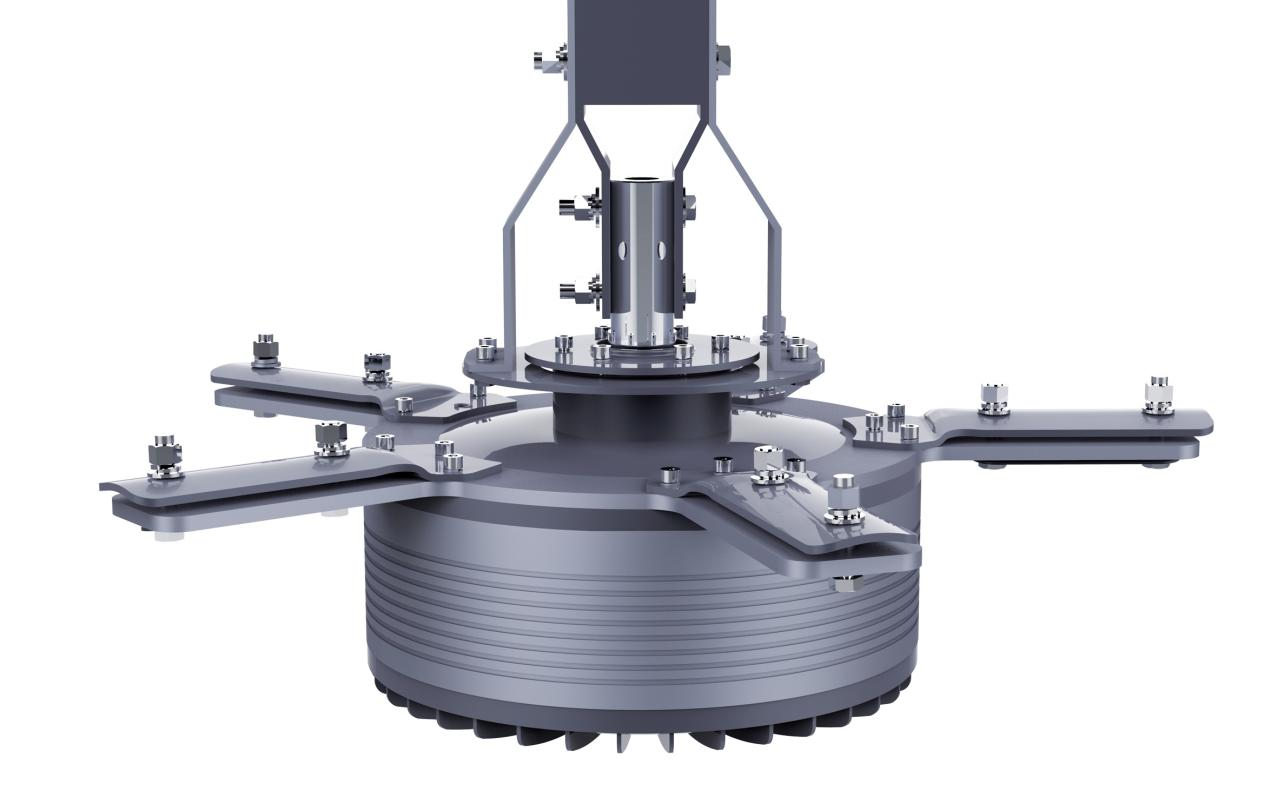 直驱式永磁电机无底盘,叶片支架置于端盖顶部,与端盖和转子连接