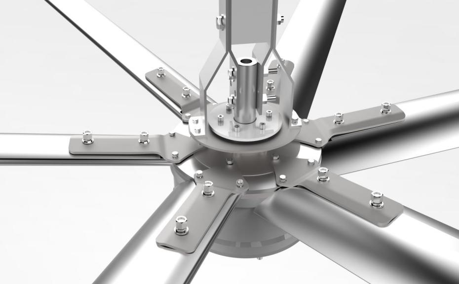 风叶与主机采用公母连接方式,而且在风叶上采用压板与主机再次固定,避免由于螺丝松动而造成风叶脱落。